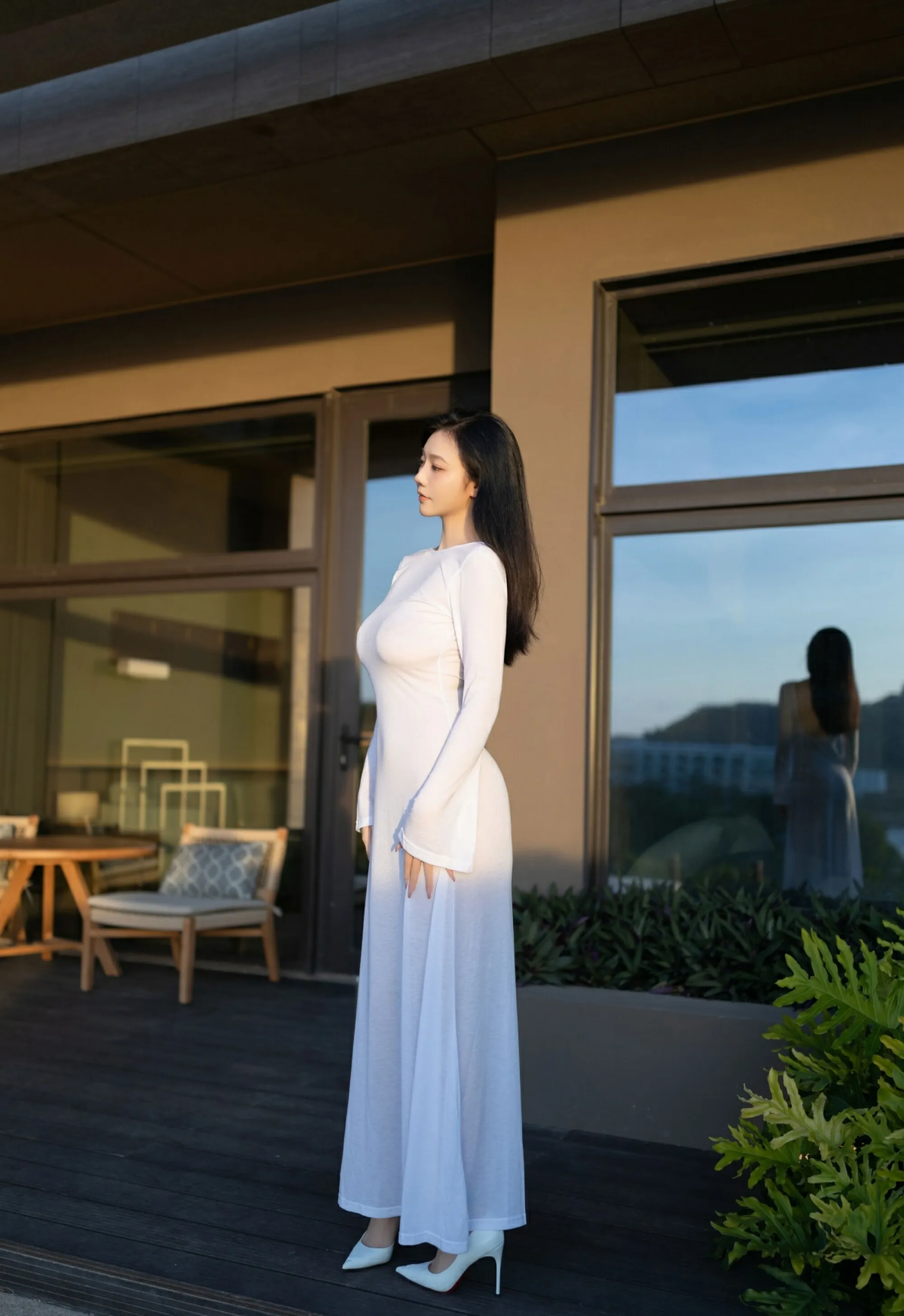 她身着性感白色连衣裙,宛如梦幻中的仙子降临。那白色的裙摆轻盈飘逸,随着她的每一个动作,都仿佛在诉说着无尽的温柔与魅惑。